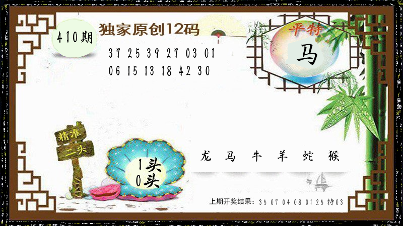 | 0408期:精准单双〖双数〗开:06牛对 | |