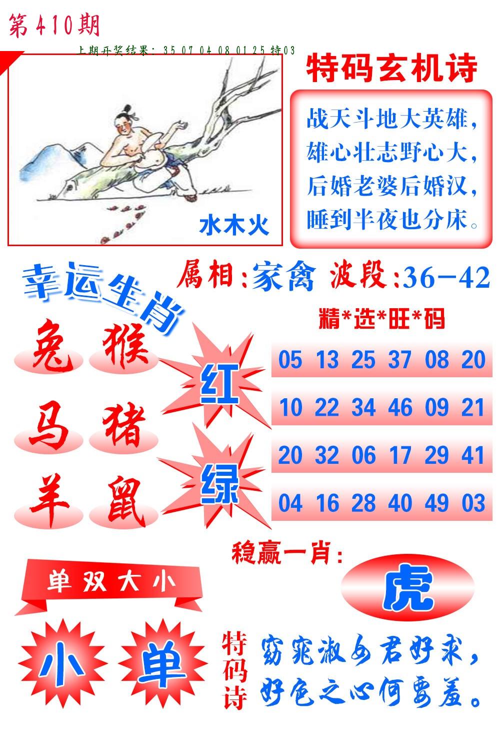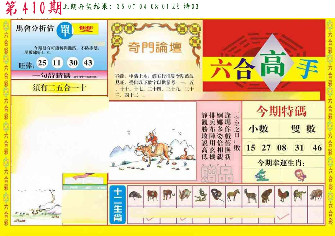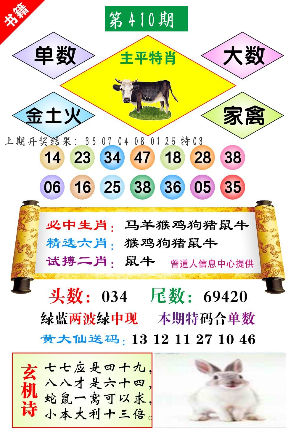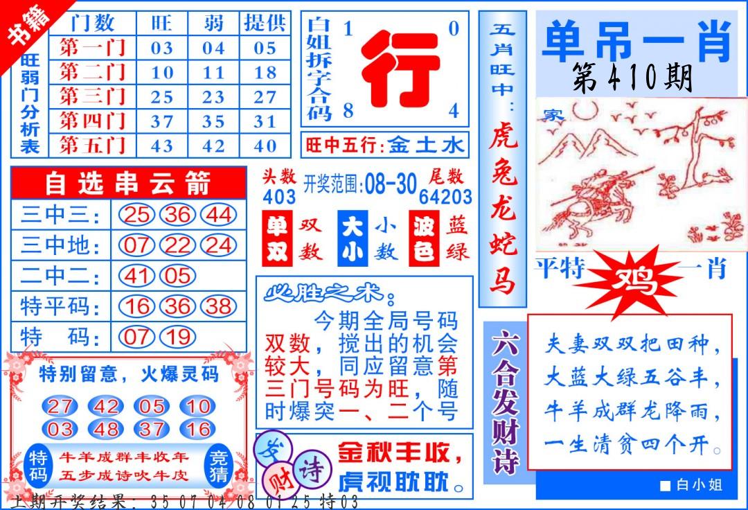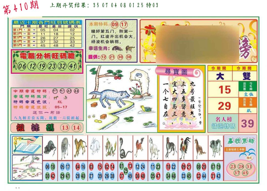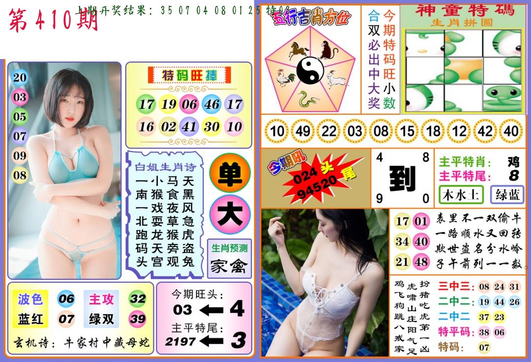 | 0408期:单双四肖八码 开:06牛对 | |