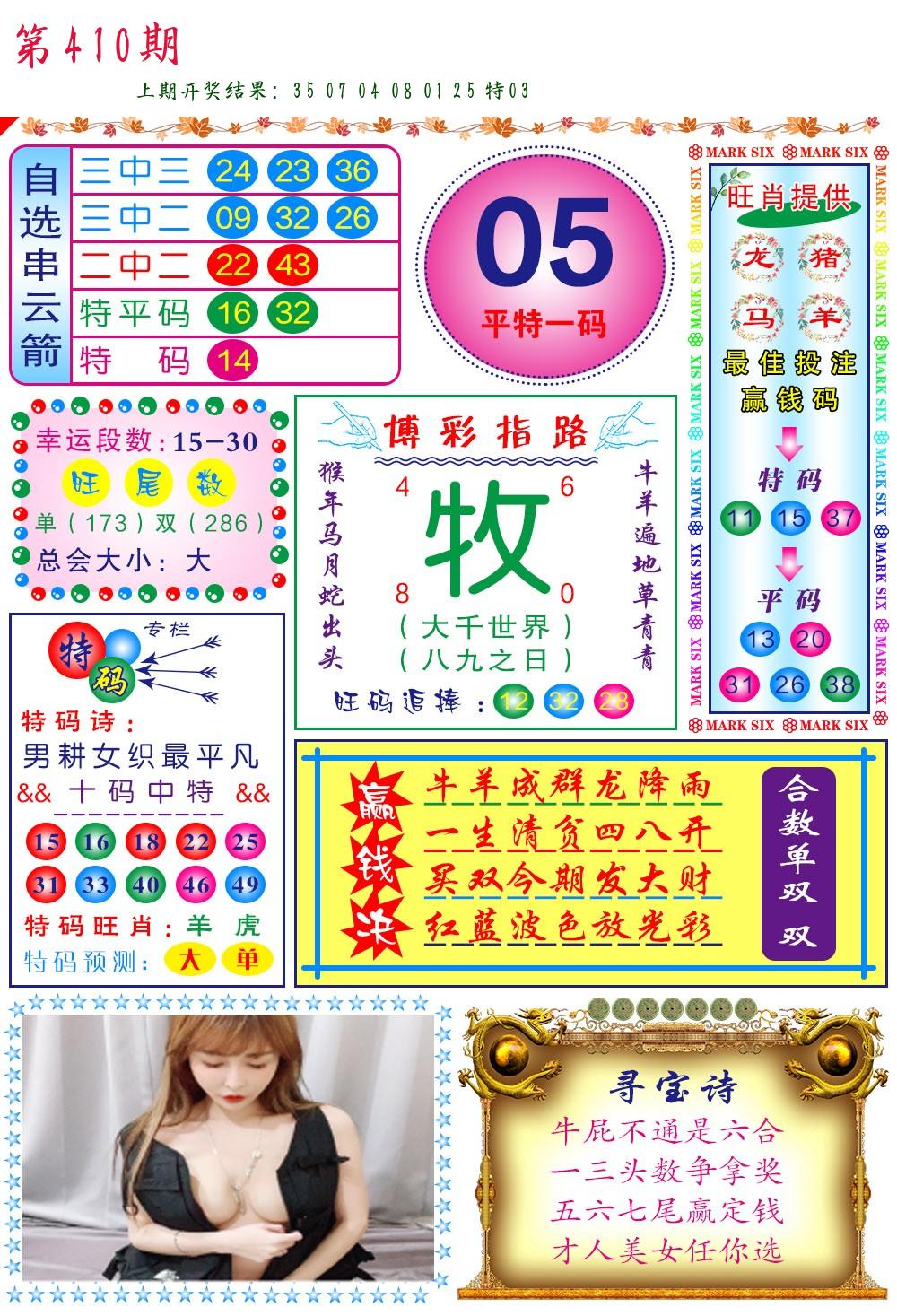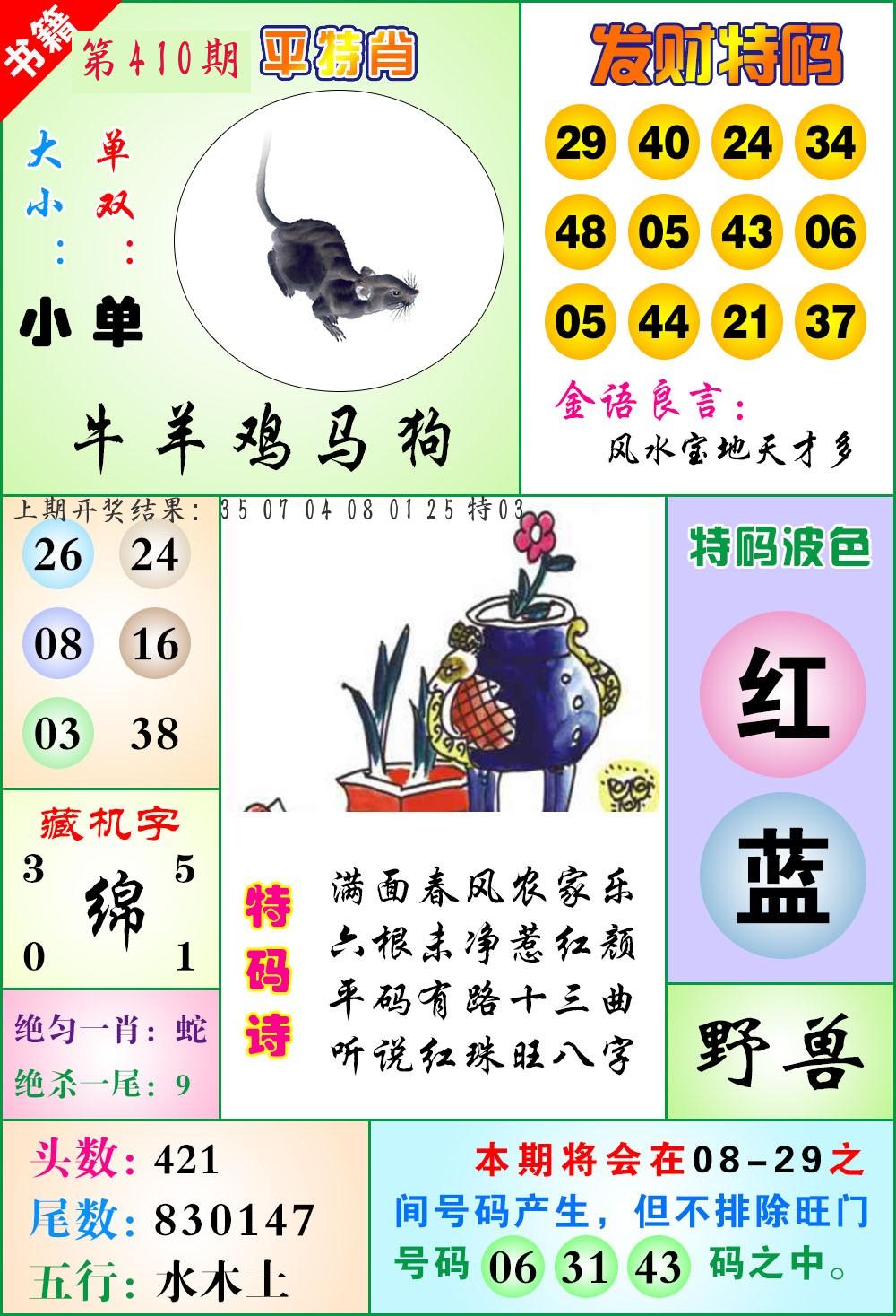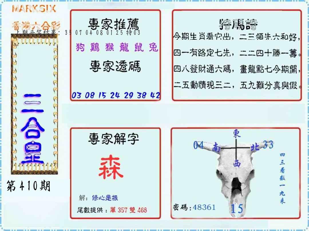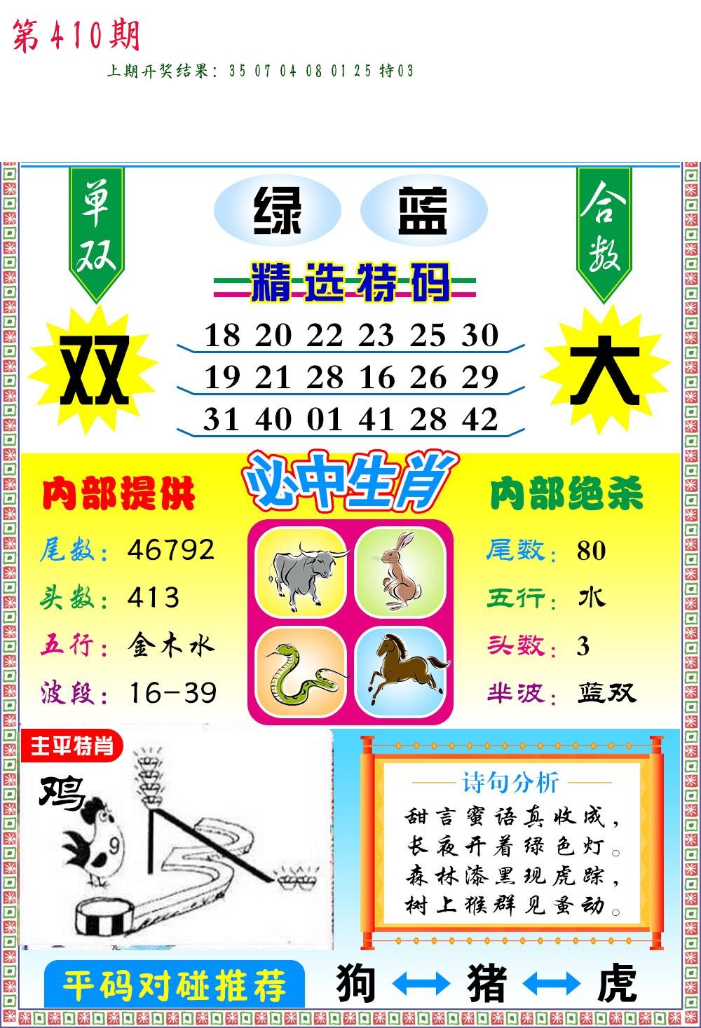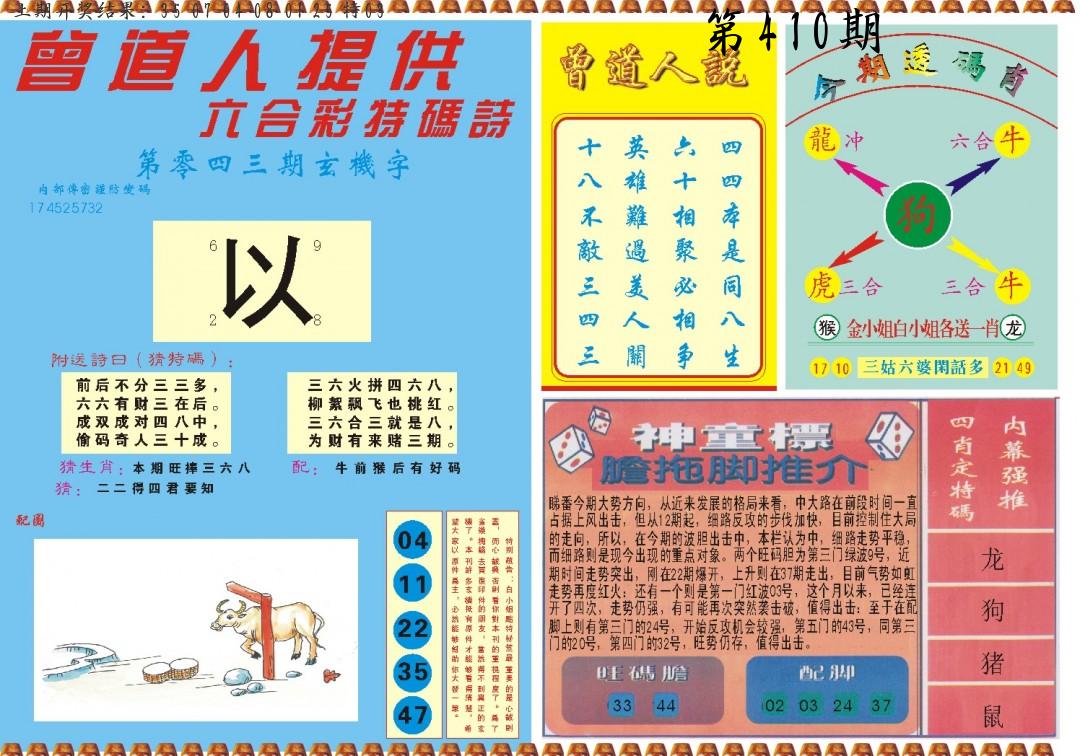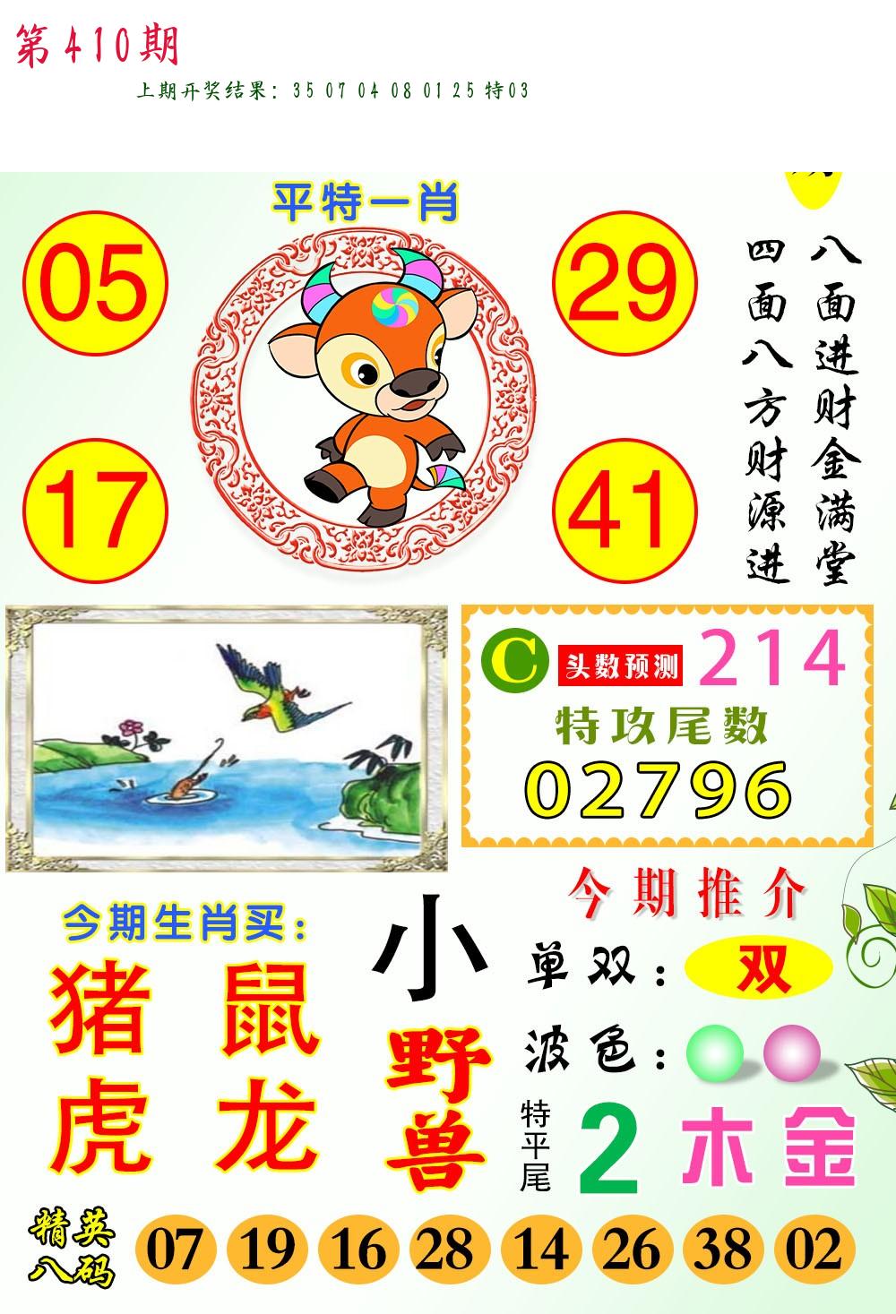 | 0408期:单双四肖八码 开:06牛对 | |