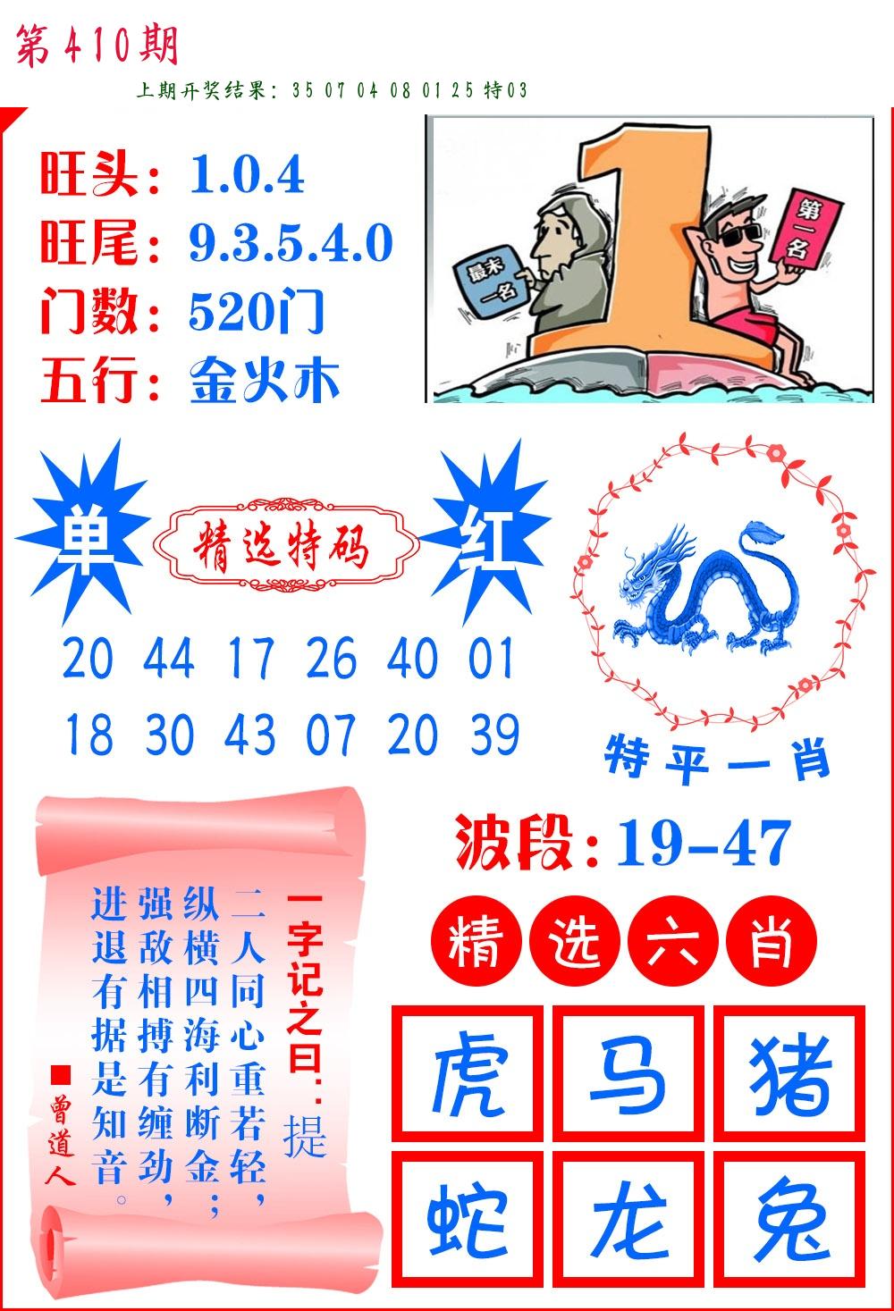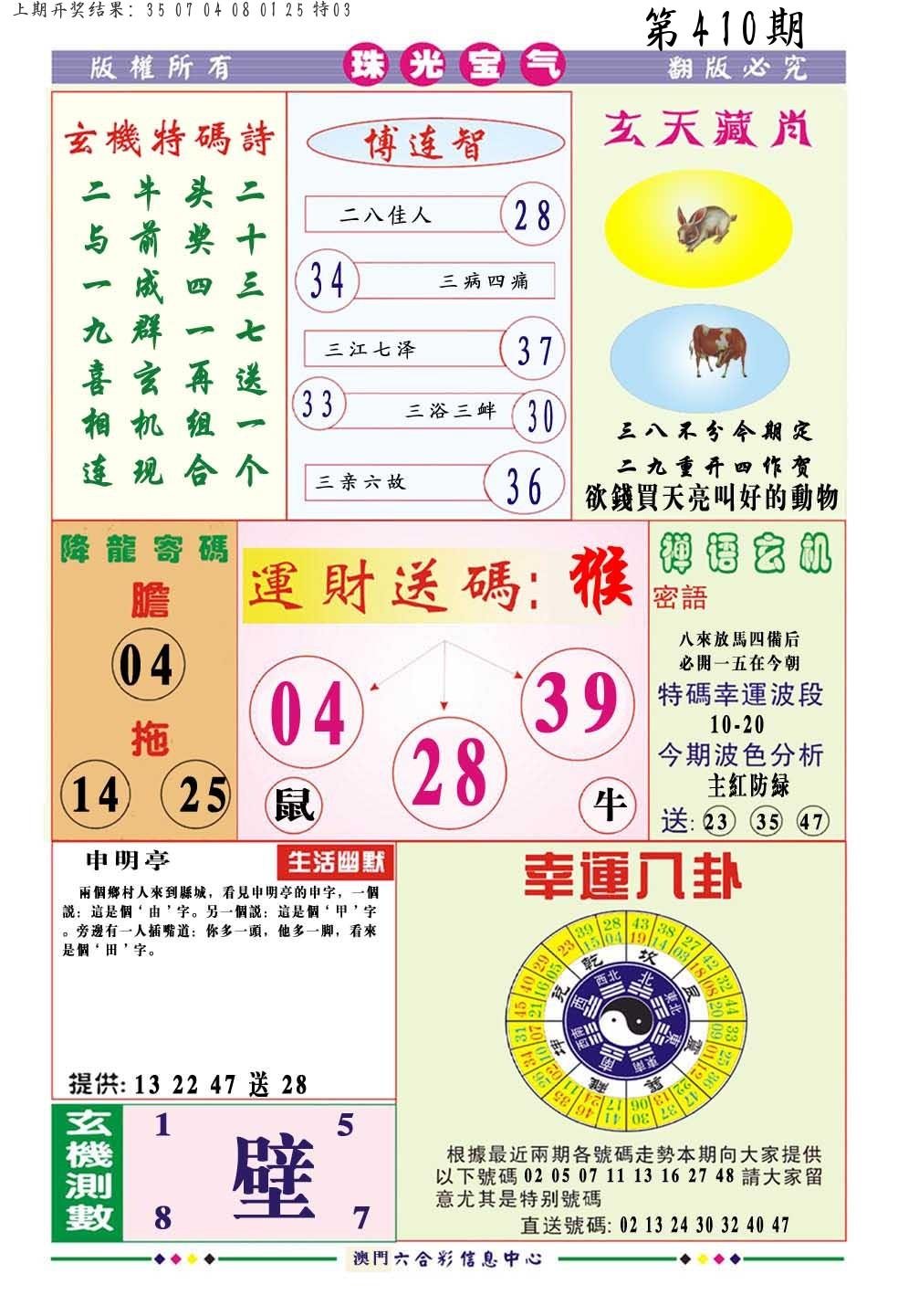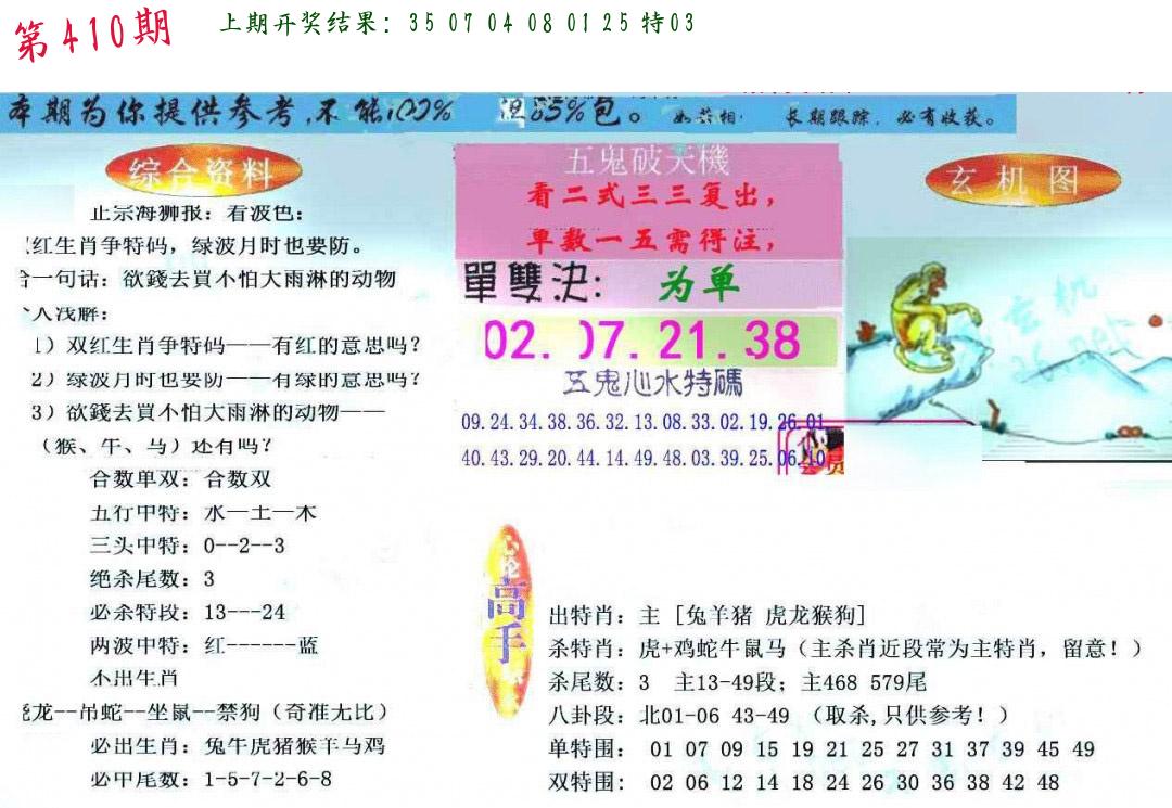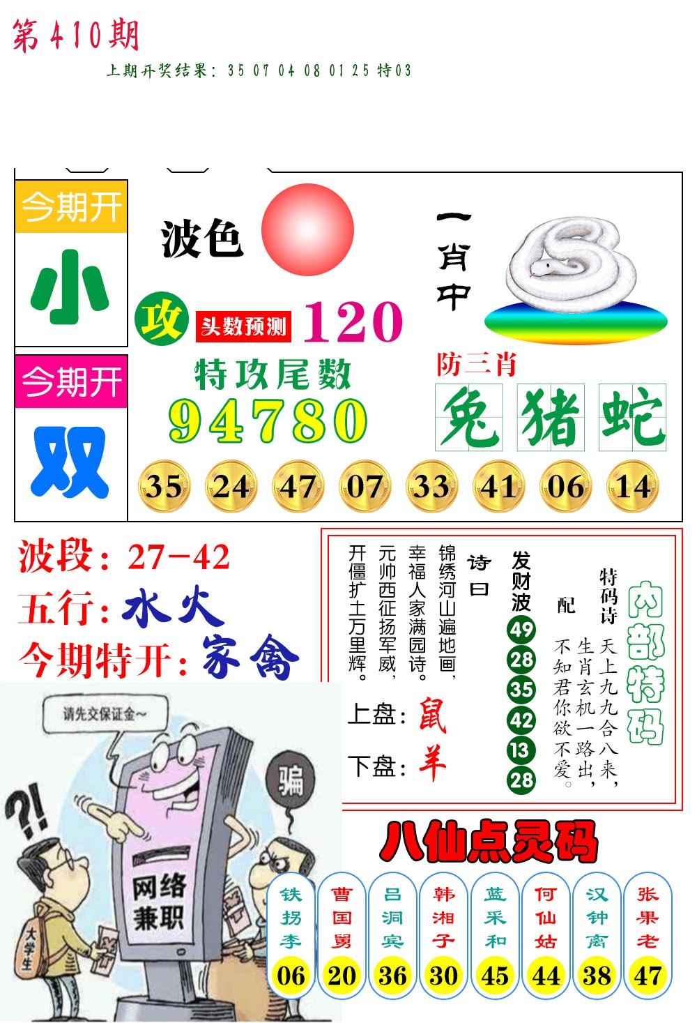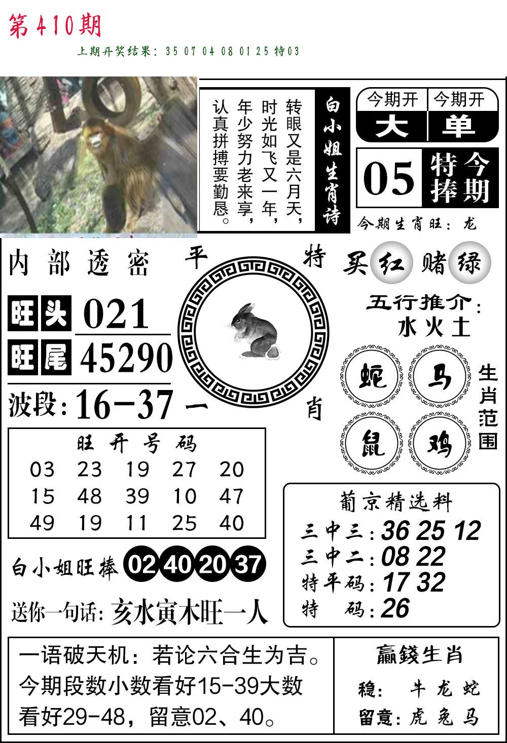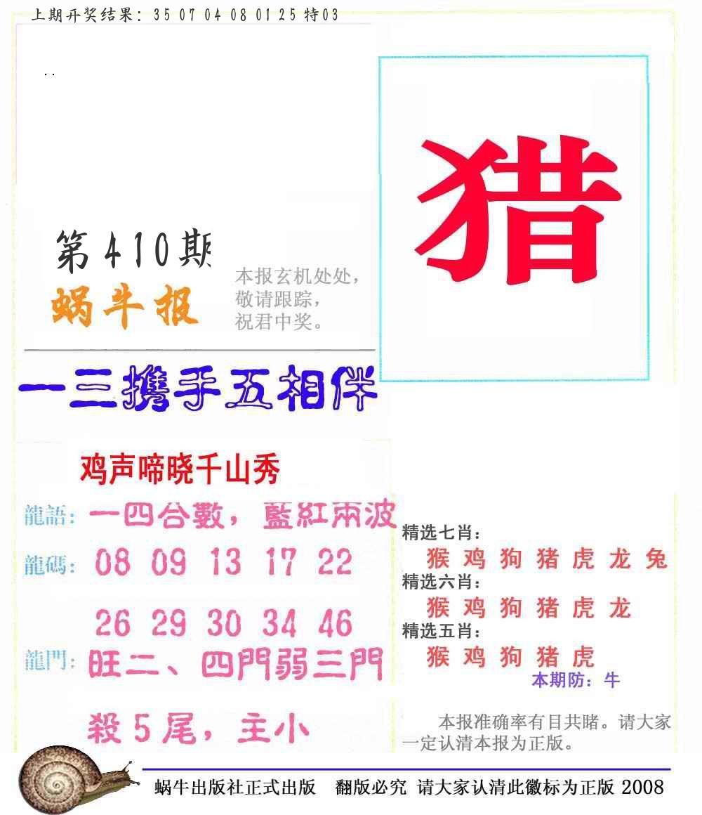 | 0408期:单双四肖八码 开:06牛对 | |