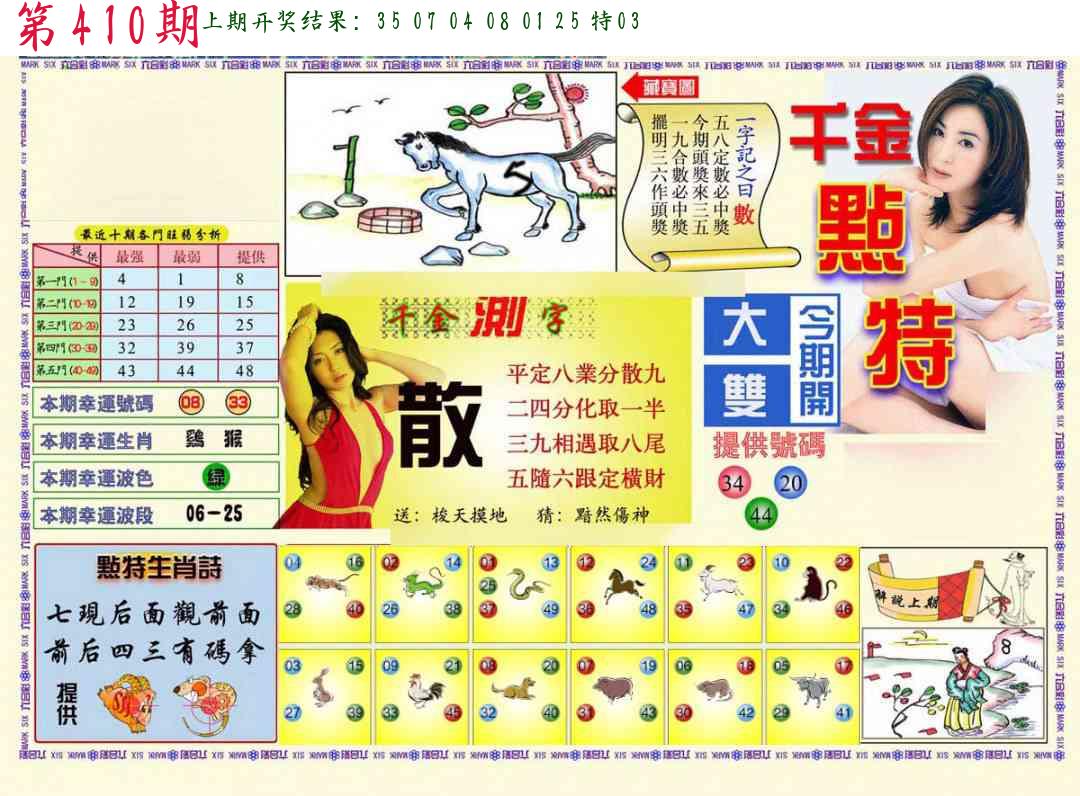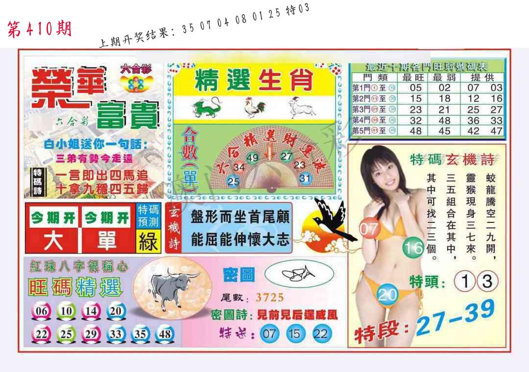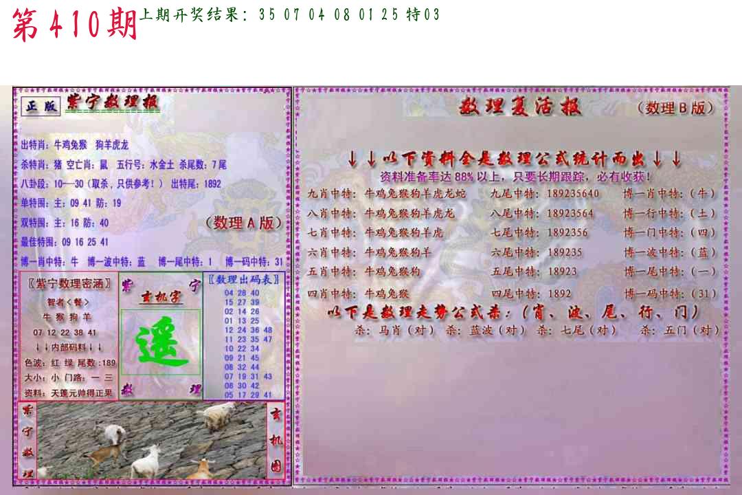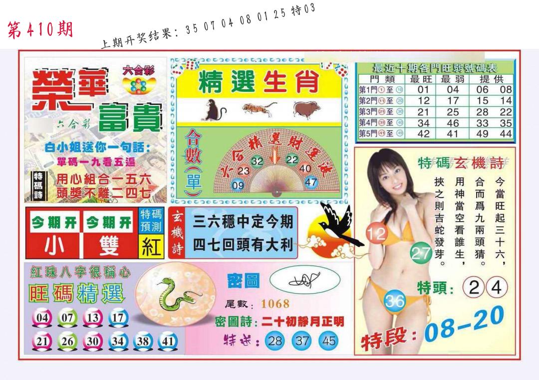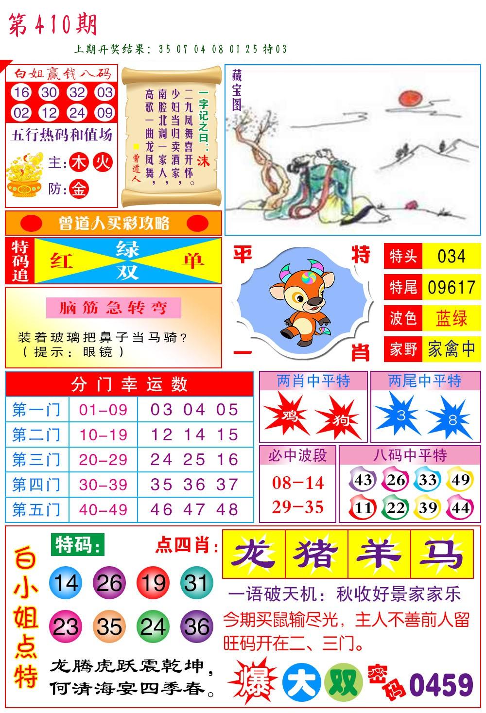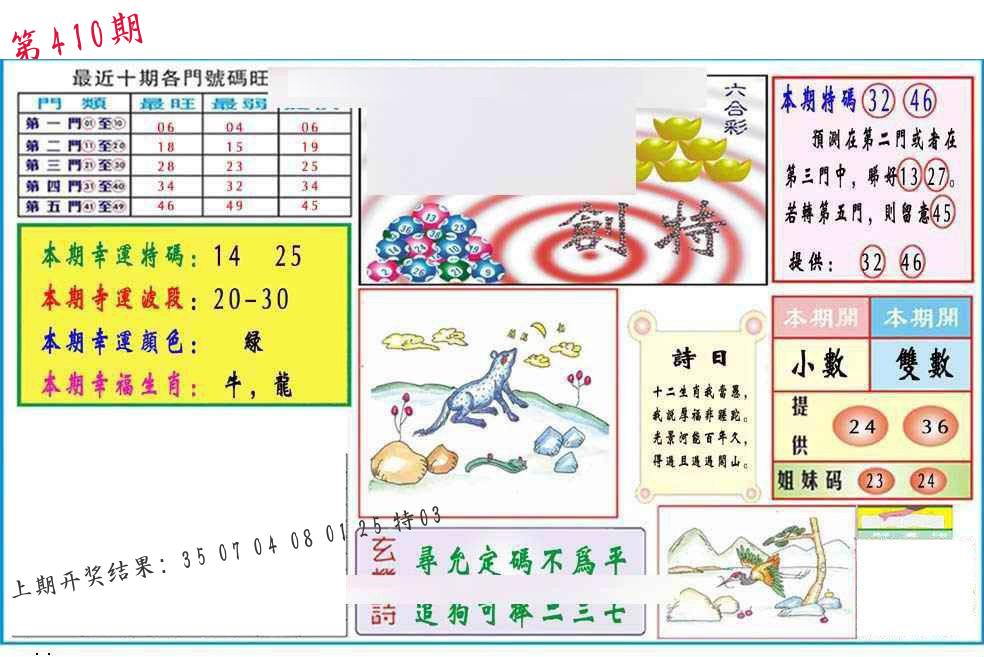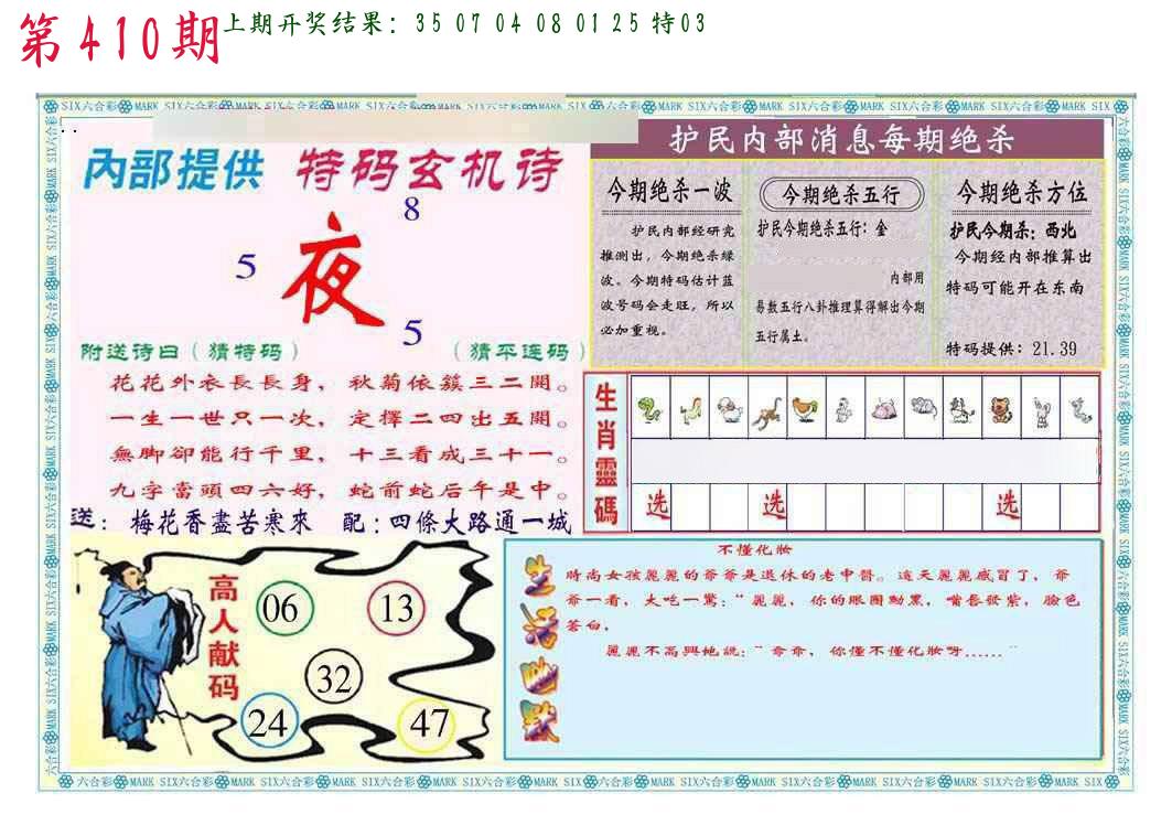 | 0408期:单双四肖八码 开:06牛对 | |