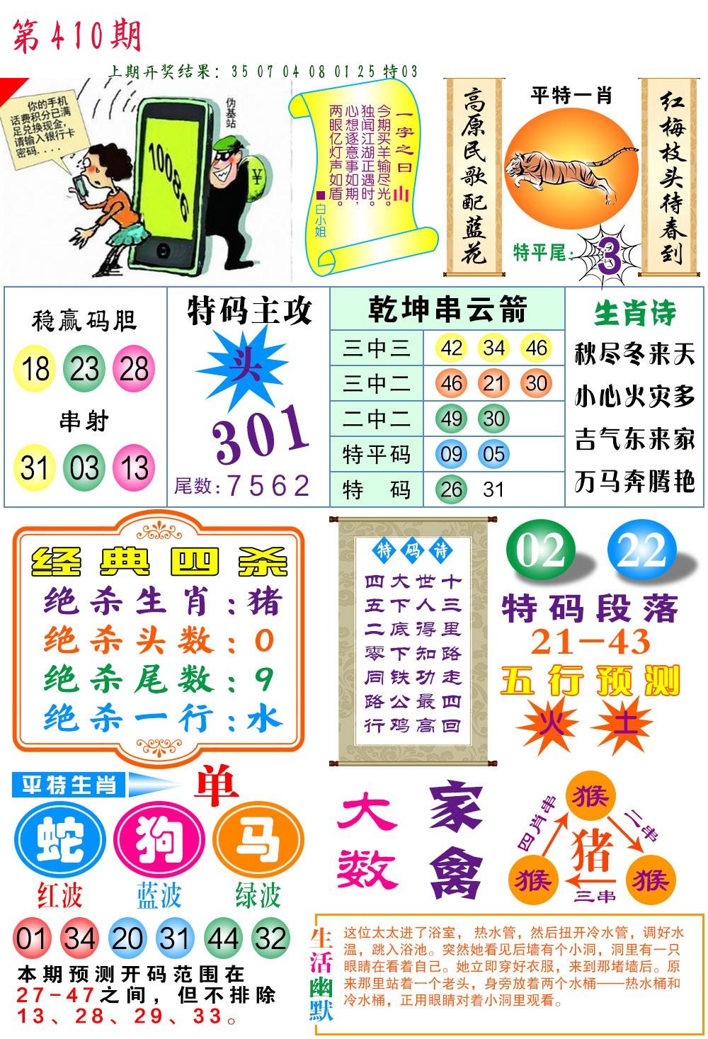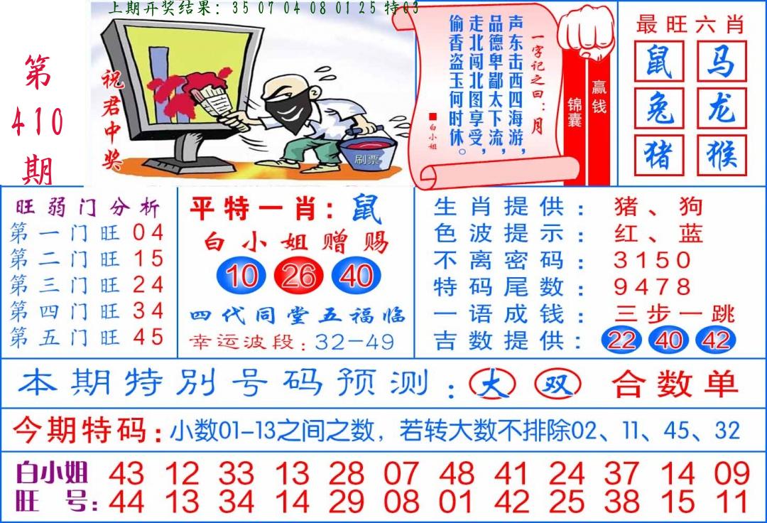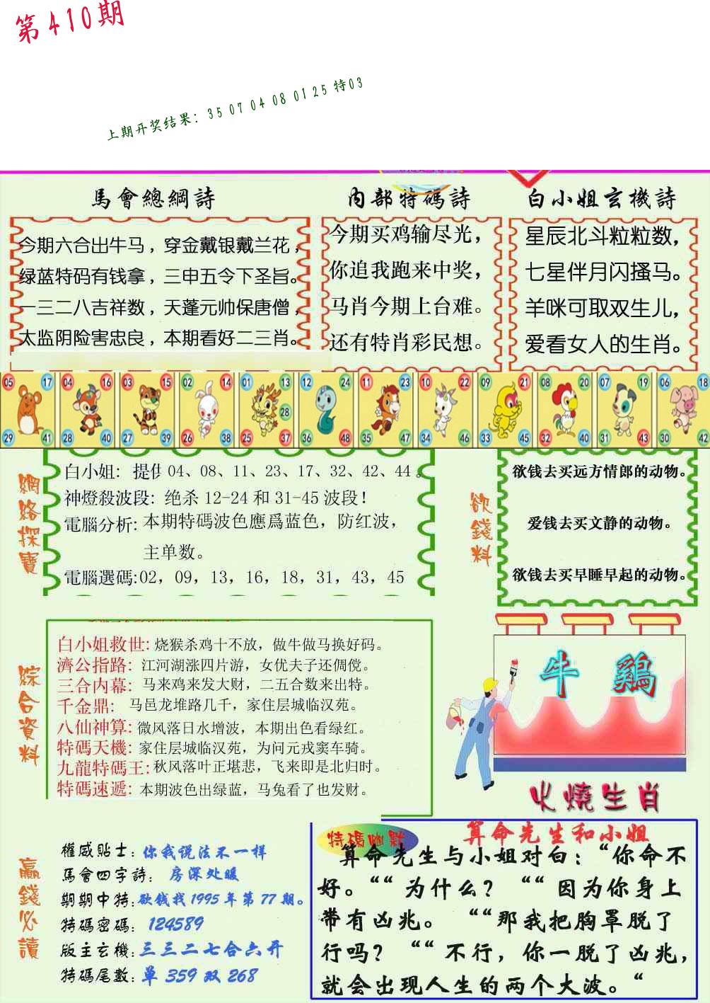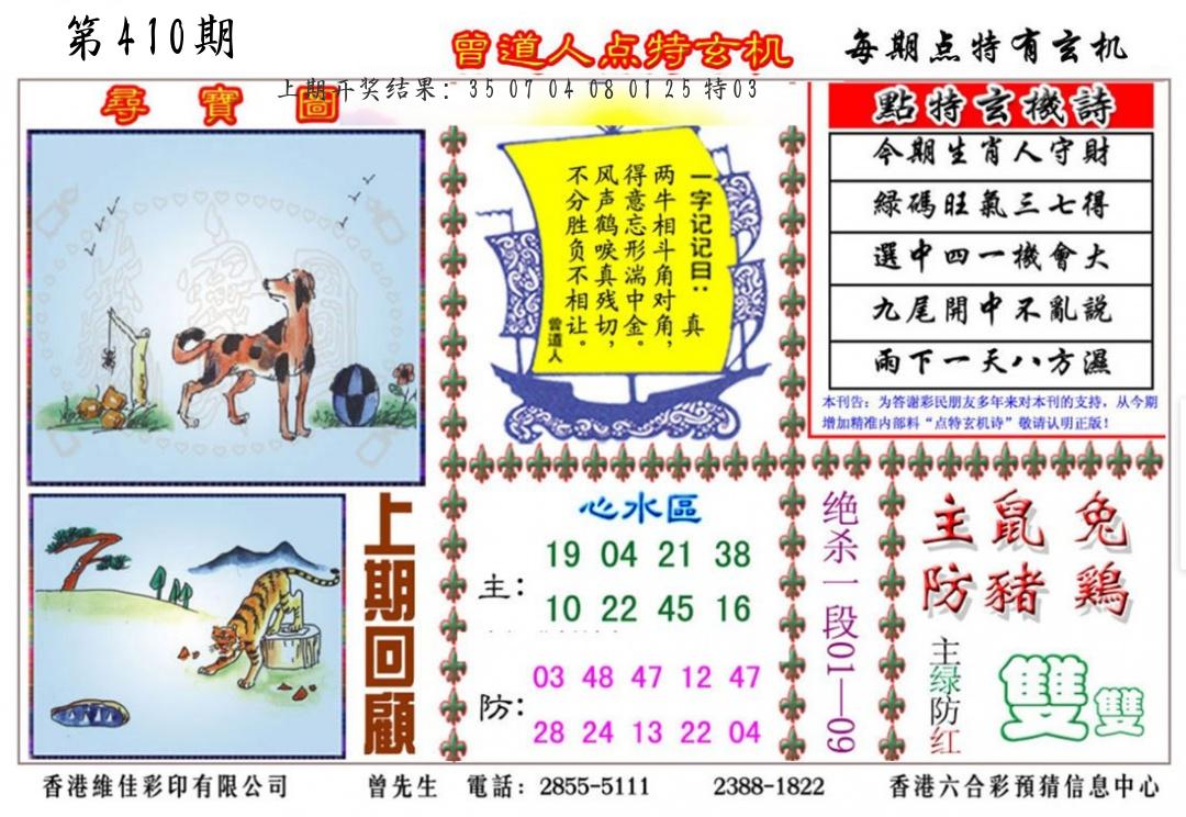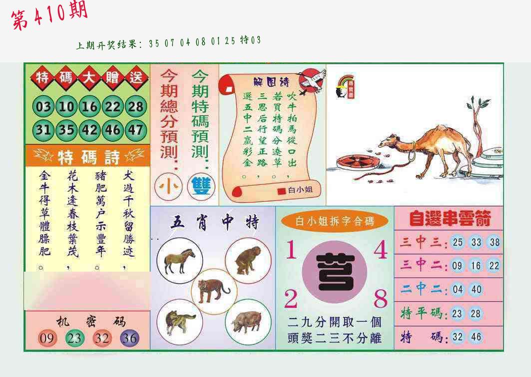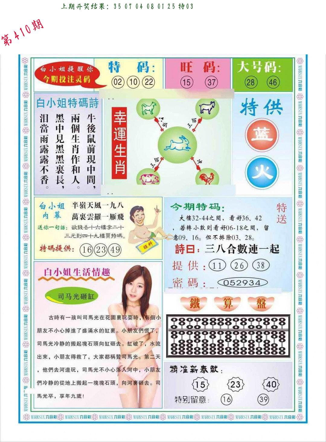 | 0408期:单双四肖八码 开:06牛对 | |
