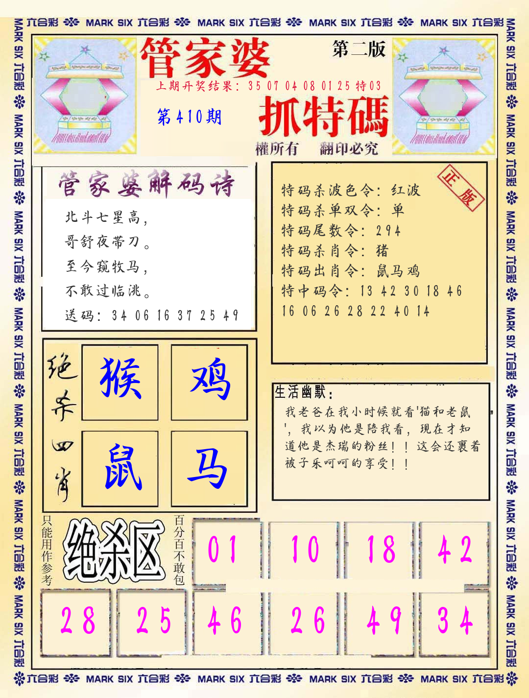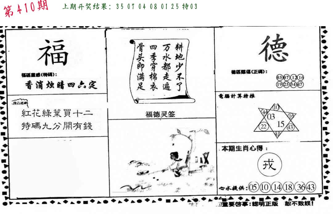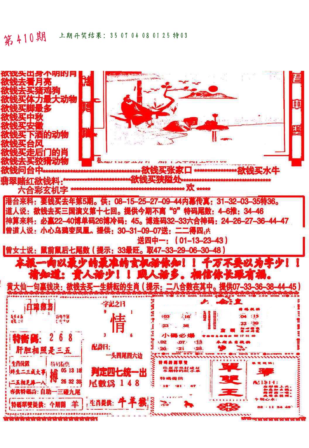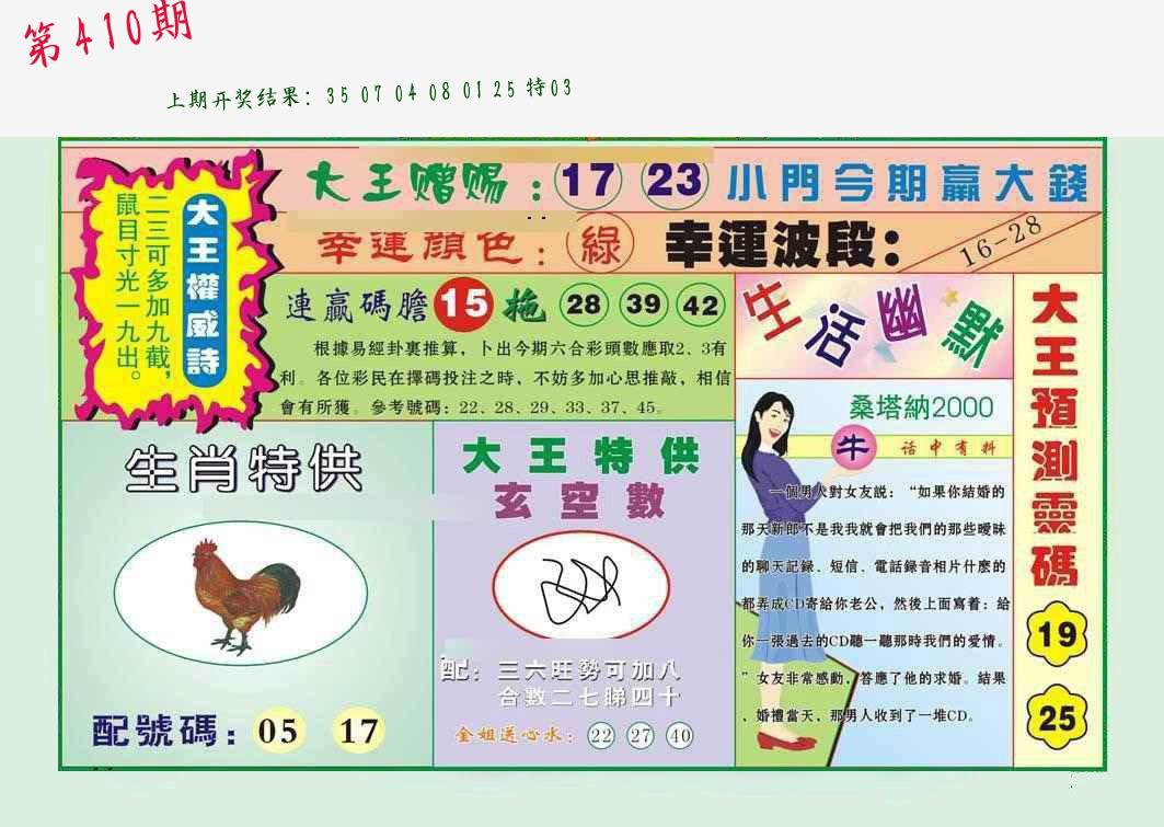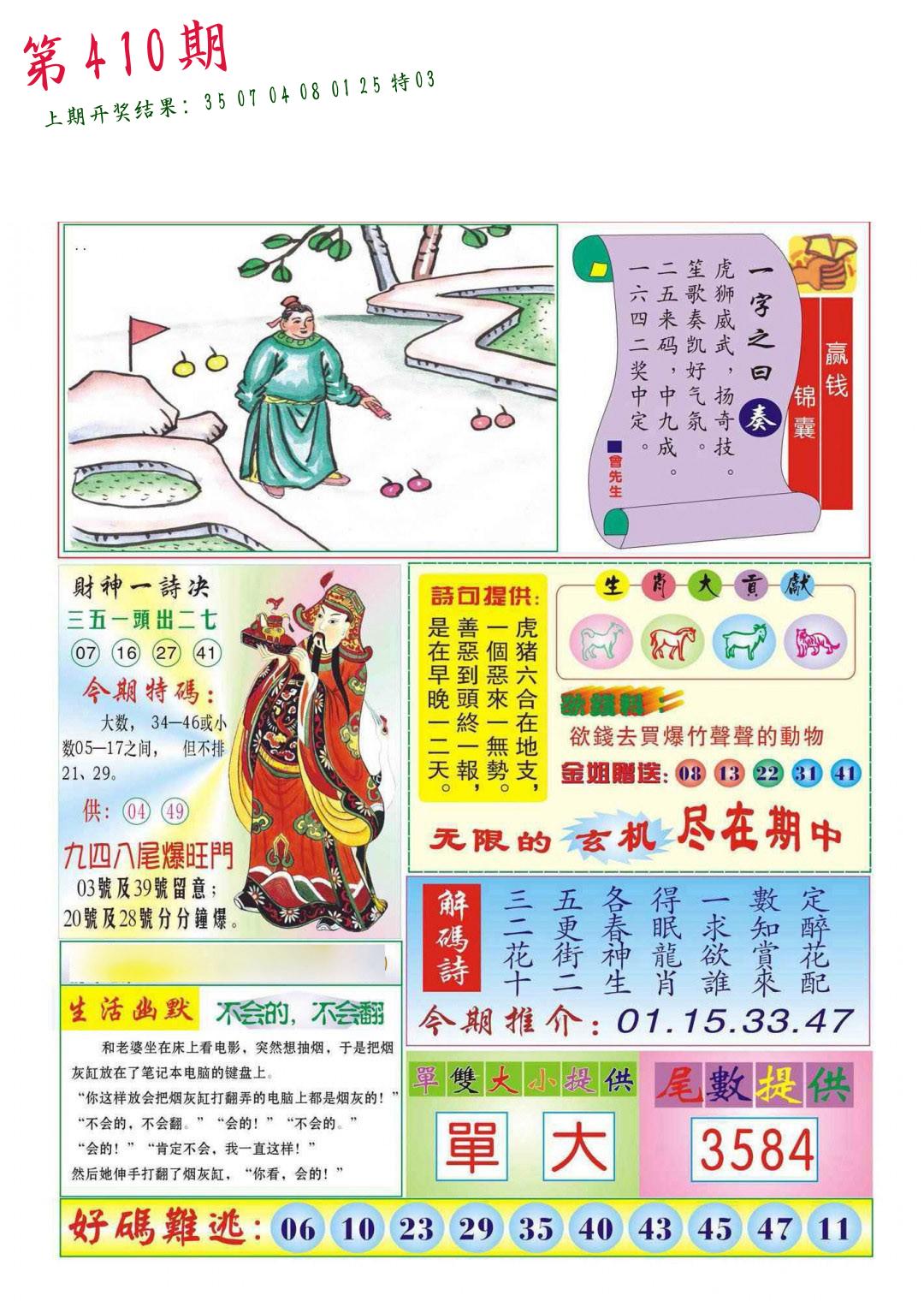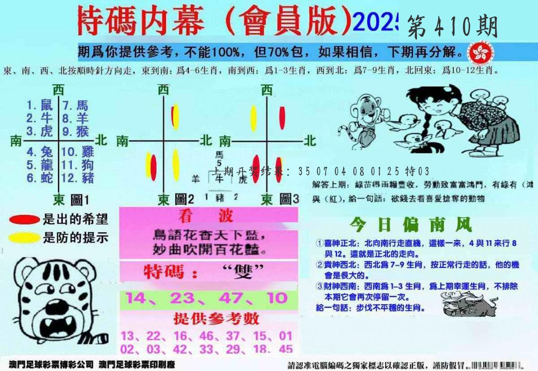 | 0408期:单双四肖八码 开:06牛对 | |