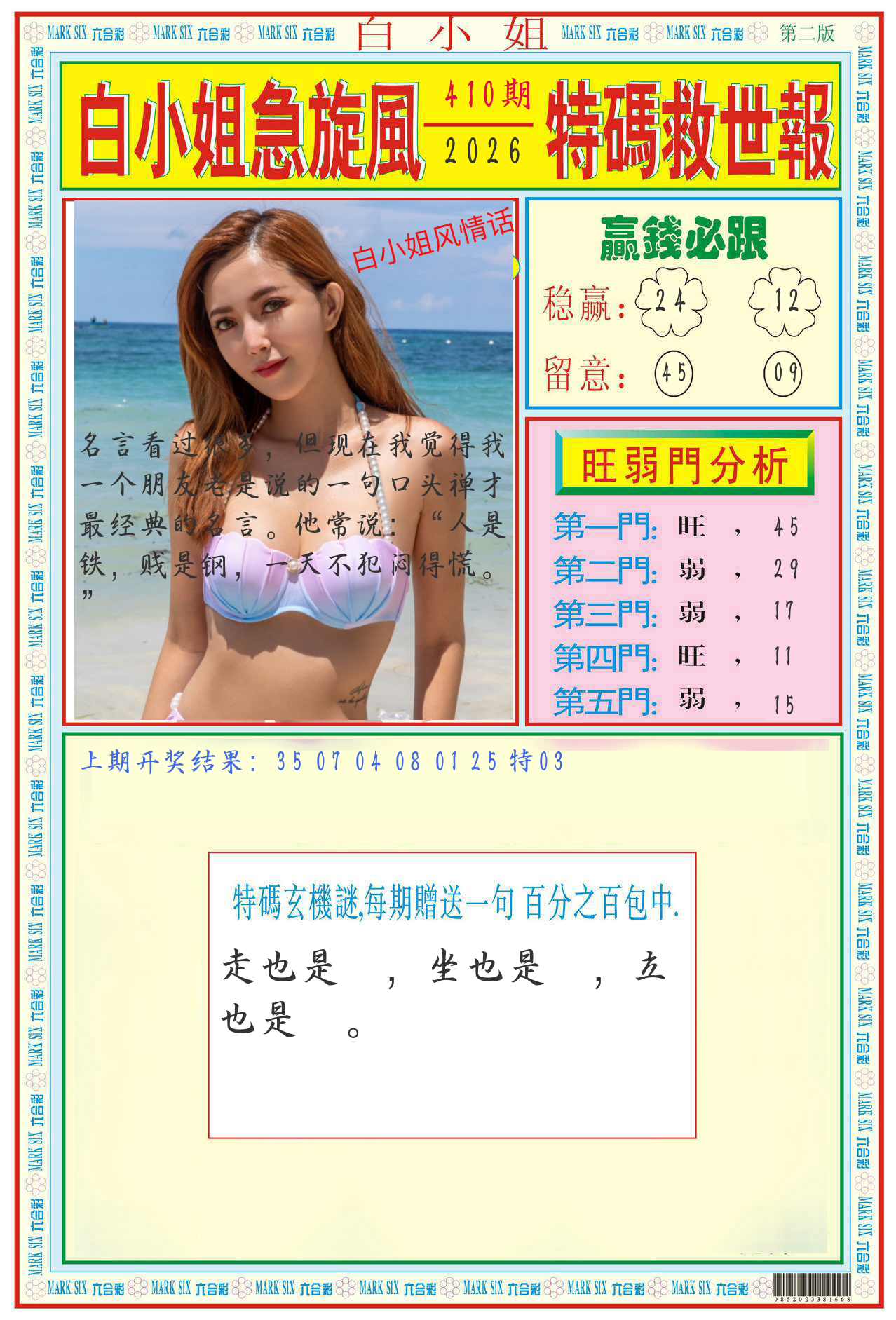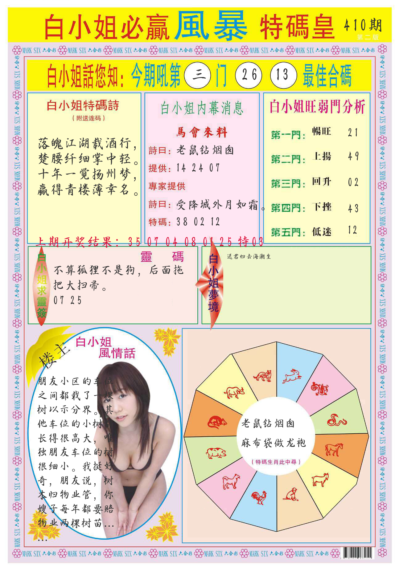 | 0406期:逼哥四尾八码 开23猴错 | |