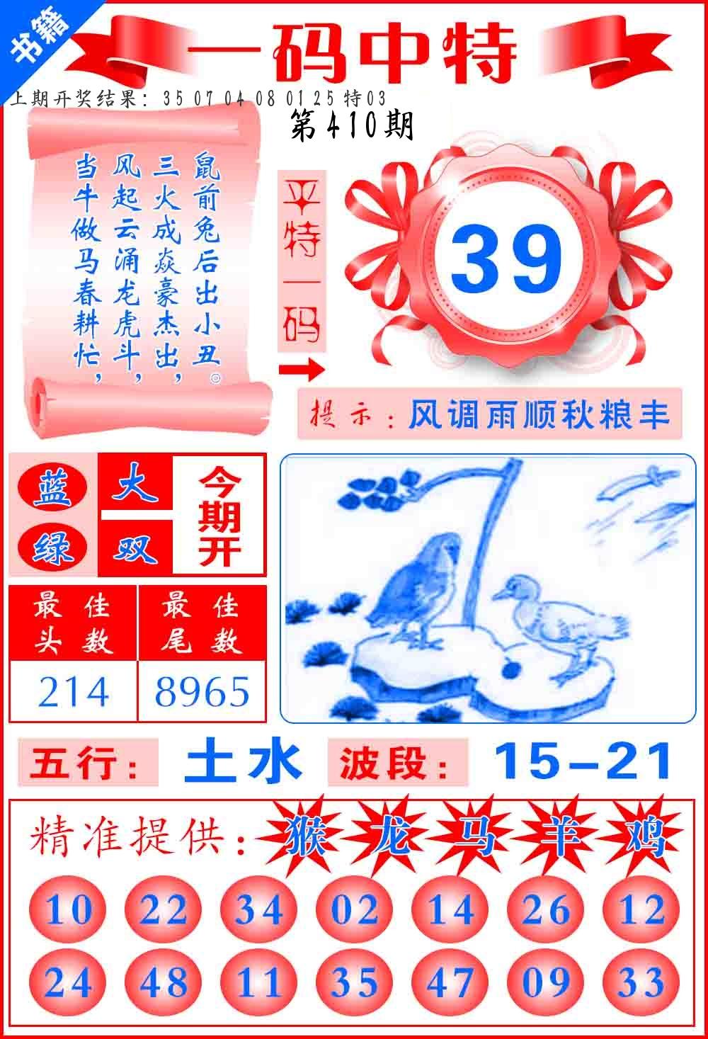 | 一肖 | 鸡【中】 |