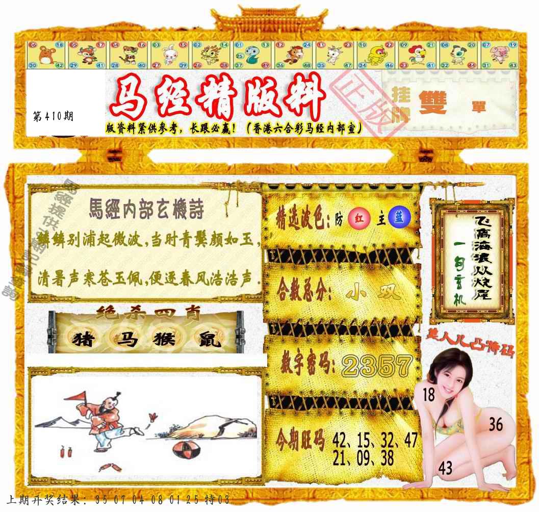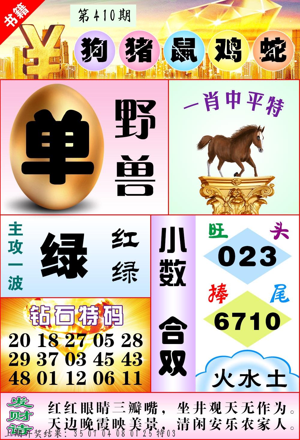 | 0406期:单双四肖八码 开:23猴错 | |