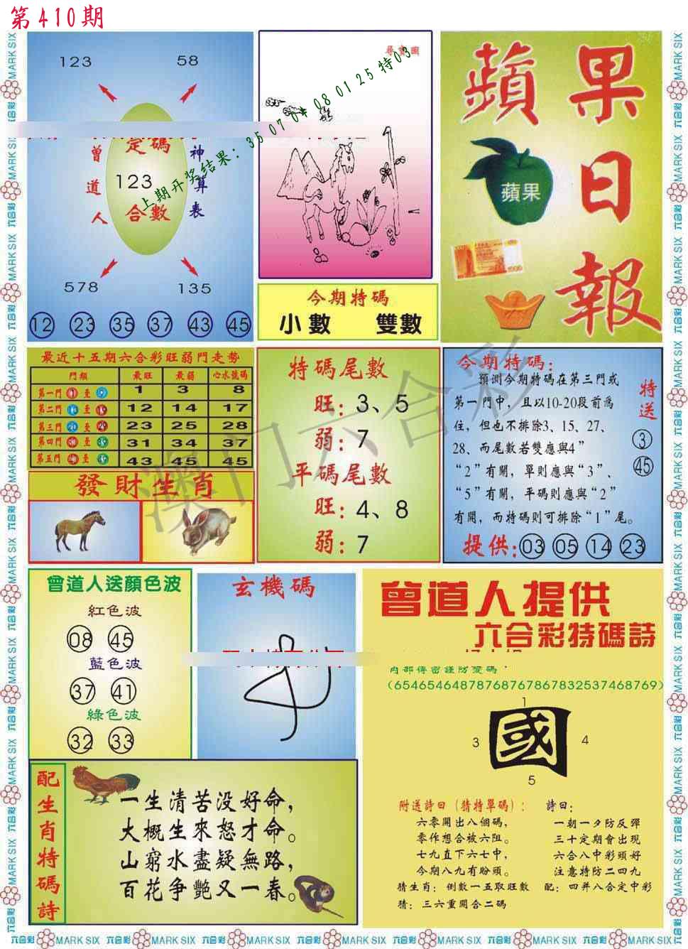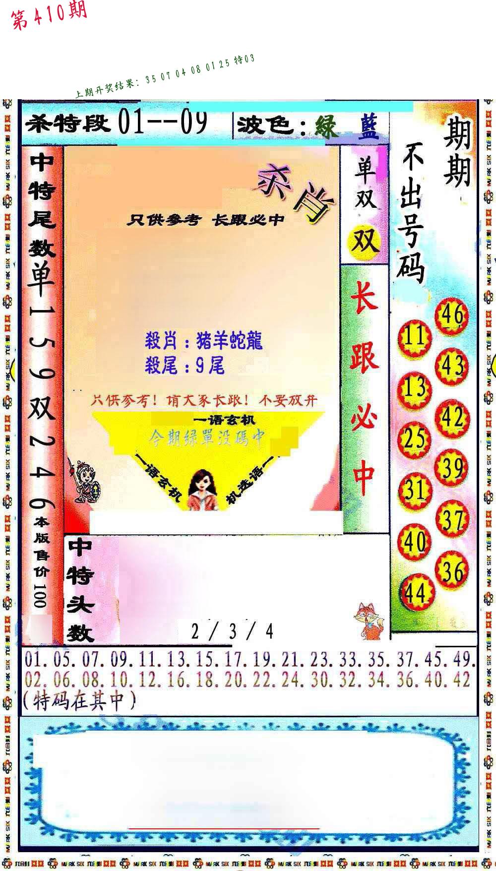 | 0409期:单双四肖八码 开:????? | |