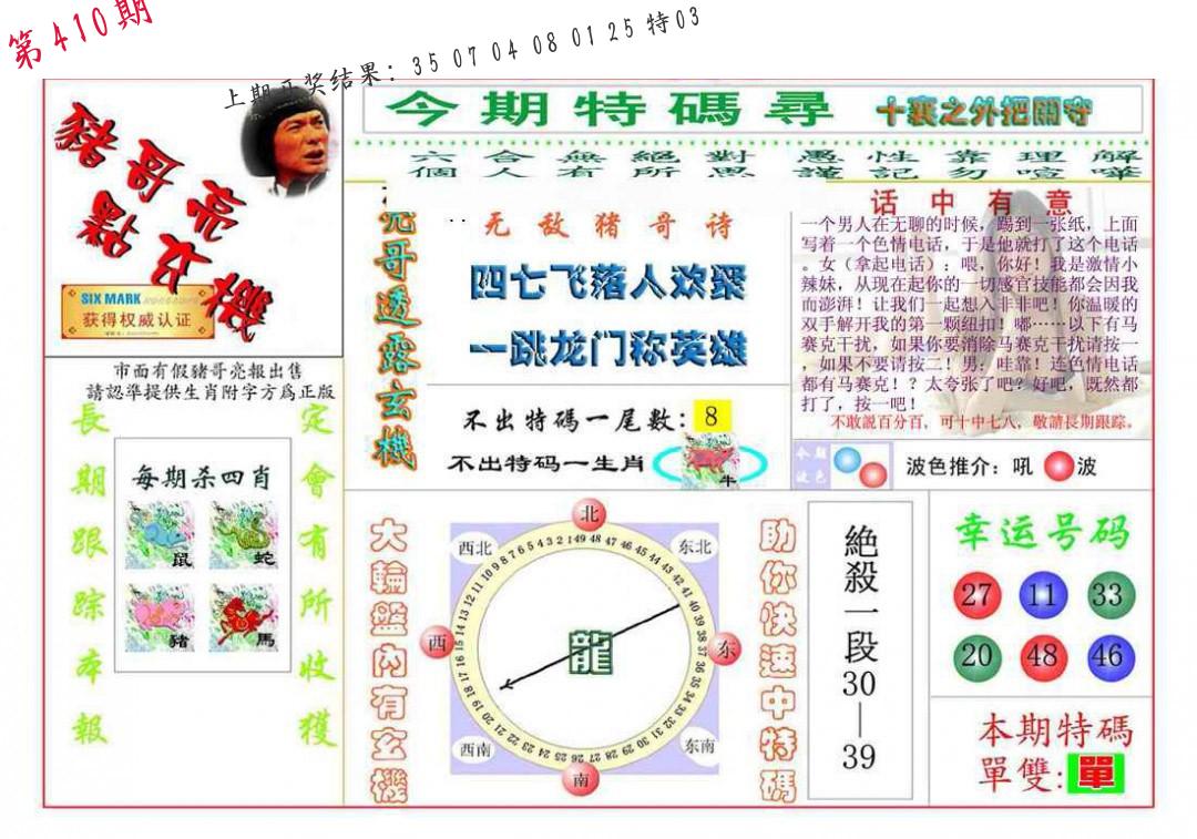 | 0407期:单双四肖八码 开:27龙对 | |
